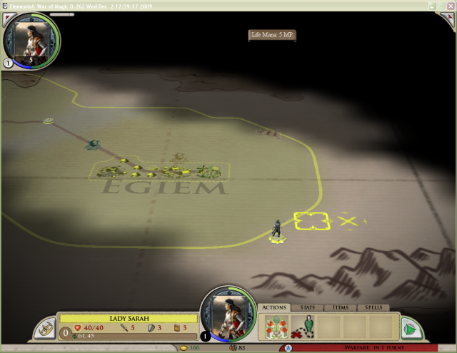 The unit will move, but the graphical marker for the unit will not update. This results in the image shown where the position of my sovereign is different as indicated by the selection box than his figure representation. The system automatically updates if I advance turn again while having the moving unit on the screen or selected.