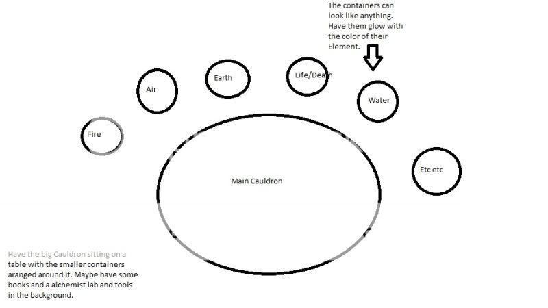 I suppose you could use a giant crystal with smaller crystals around it. Still, I think any kind of interactive interface would be funner then just clicking a picture on a graph. There could be an indicator of some sort as you mention or you could be following a recipe one of your adventurers find while on a quest. There's lots of things you can do with it honestly.