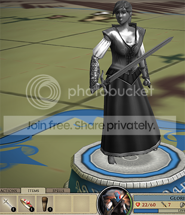 Our Sovereign can find equipment during his/her quests and, hopefully, equip it. But the figurine doesn't update, so if you equip a different weapon or armour, the figurine won't reflect the change.
