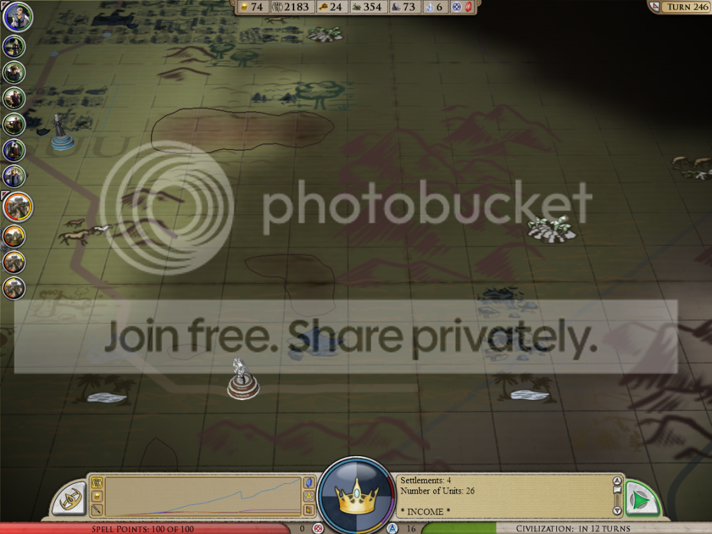 Strange. Immediately after taking the above screen shot I used control-u to remove the FOW. That caused most of the rest of the map to show up, but the mountains just below and to the left of my sovereign, as well as some others at the end of the eastern valley, didn't - they stayed blank as in the above screenshot.