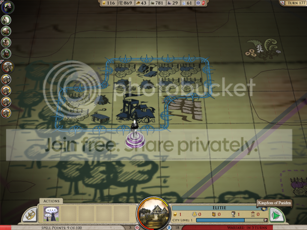 Not sure if it was graphical glitch, I carved my way through throngs of Capitar peasants (rabbits come to mind) until I reached the city (many dozens of turns later):