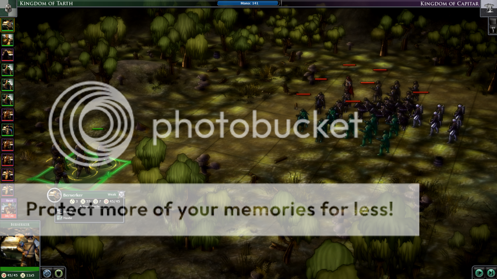 The enemy casts Obscuring Fog, but my Berserkers stop them cold. They don't have the power to threaten my tank unit. I just need to hope I can hit those enchanted units.