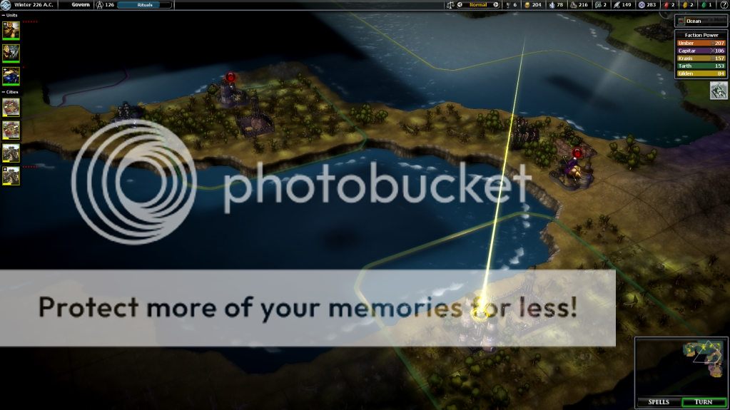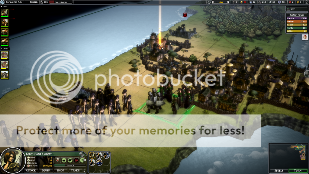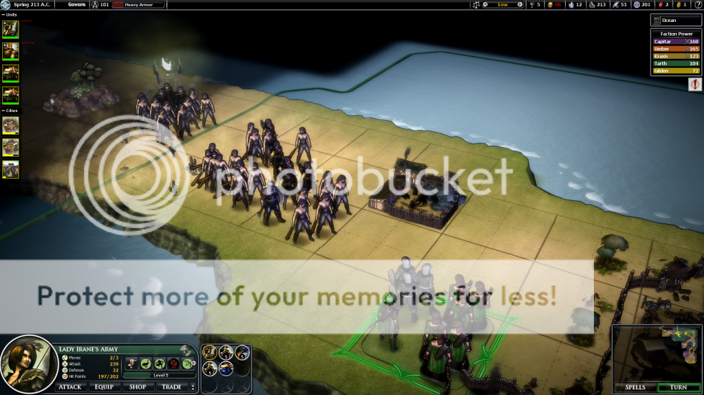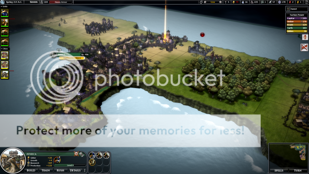 By the end of Act I it was clear that Lord Relias and I were far behind because of our unfortunate start. It was also clear to the other factions, who began throwing money at us to go to war or demanding tribute. What Lord Relias didn't realize was that all that time he spent researching civics to make his metropolis so wonderful, I was refining my army and specializing them in siege warfare. He fell in half a year. The victory brought me nothing but trouble. Because I attacked a Kingdom, every Kingdom grew sour towards me. Except Gilden, who later offered a trade treaty. Greedy bastards got no honor. Then Kraxis, now to my west from Athica, declared war due to territory disputes over Altar's land. I was in trouble. Taking Altar down was something I had planned for years. I knew nothing of Kraxis or his empire. I could not guess what would happen next in Act II.