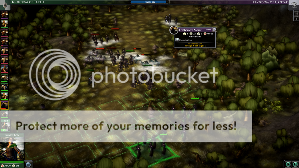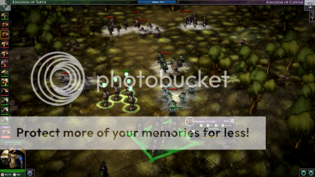 As I fought the endless horde in the west, a group of the Knights of Capitar attempted to sneak through the swamps to my east. Any Loremaster would have known that the Tarth use the swamps to hide their numbers. This ambush would present me with an equal battle. This is a first for FE.